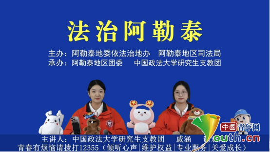 新疆维吾尔自治区阿勒泰地区团委联合阿勒泰地委全面依法治地委员会办公室共同举办“你好,宪法!”国家宪法日专题普法直播活动。中国政法大学第27届研究生支教团成员戚涵、谢君陶担任直播嘉宾,为阿勒泰地区的青少年普及宪法知识。中国政法大学研支团供图