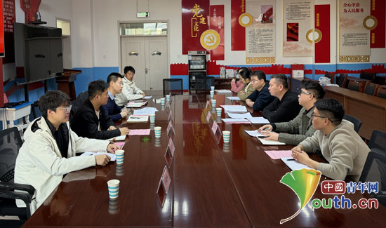 大连理工大学团委赵显嵩等一行与团伊吾县委、驰志高级中学的负责同志以及研支团成员进行座谈。大连理工大学研支团供图