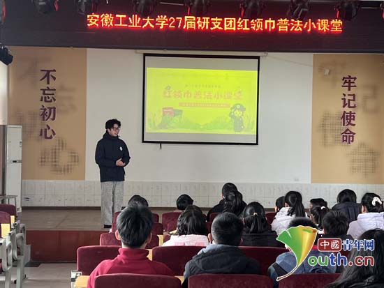法治润童心,安全伴成长。为深入推进青少年法治教育,筑牢少年儿童安全防护屏障,助力孩子们度过一个平安、充实、有意义的寒假,近日,安徽工业大学第27届研究生支教团在四川省乐至县青少年宫开办“七彩假期”寒假公益托管班,为在场的小学生送上一堂兼具知识性与趣味性的法治教育课。