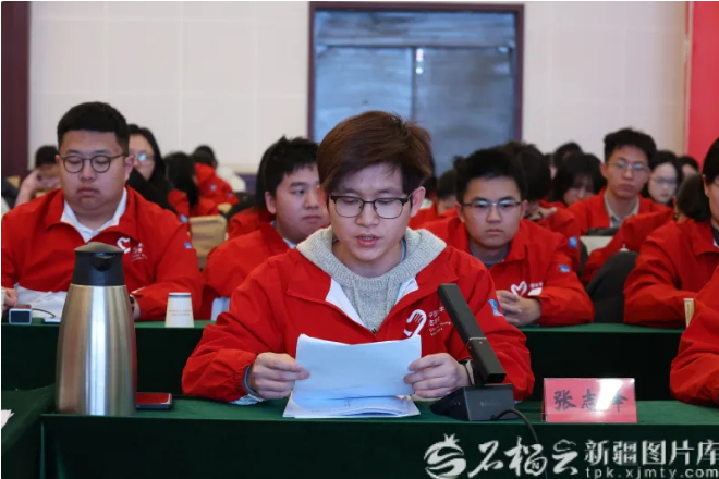 近日,共青团新疆维吾尔自治区疏勒县委员会开展“凝心聚力促服务·暖心慰问迎新春”座谈会,张志锋作为代表在会上发言。本人供图