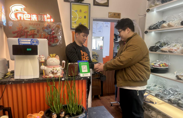 西部计划志愿者、延北街道园丁社区干部王筠烨帮助解决商户各项诉求。张圆圆摄