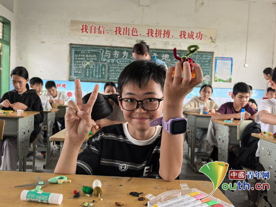 “老师,你看我做的这个小作品!”在研支团成员手把手的教学指导下,原本普通的材料在孩子们的手中变换出各种充满童趣的形状。