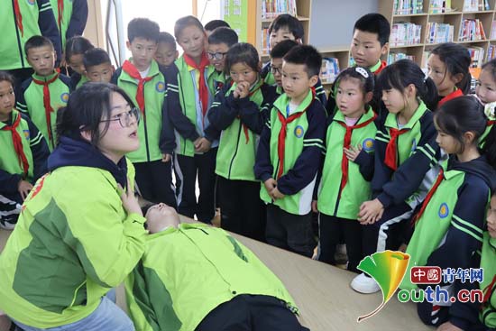 研支团成员演练如何进行防溺水的安全救护。中国青年网通讯员刘宇洲供图