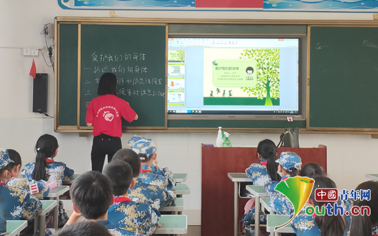 中国青年网北京6月4日电(记者 李川)近日,贵州师范大学研究生支教团成员在金沙县实验小学开展了以“爱护我们的身体”为主题的防性侵课程。