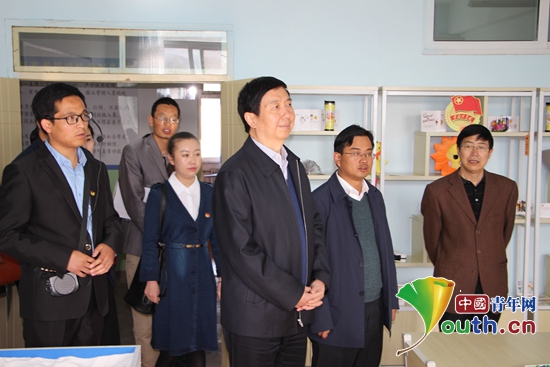 甘肃省定西市副市长、市公安局局长曹明等莅临漳县第二中学观摩指导共青团改革工作,并参观福建师范大学研支团“漳县二中小葵家园”学生课外活动中心。叶邱豪 供图