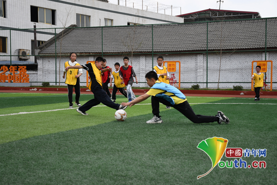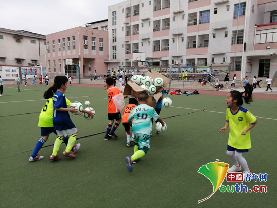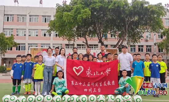 中国青年网北京4月21日电(记者 李彦龙 通讯员 管玉蓉)和煦的阳光正温柔地洒在绿茵茵的球场上,孩子们正热火朝天地进行足球比赛。近日,东北大学第23届研究生支教团在四川省三台县七一小学举办足球捐赠仪式。