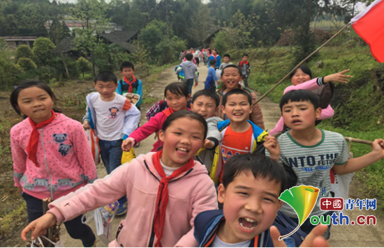 图为孩子们快乐地走在春游路上。 吉林农大研支团 供图