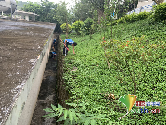 团员青年清理校园绿化带垃圾。南京工业大学研支团 供图
