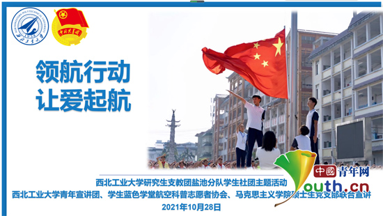 中国青年网北京11月2日电(记者 李彦龙 通讯员 麦吾兰·麦麦提敏 张书铖)为加强青少年党史学习教育,坚定“听党话、跟党走”的决心,进一步推进校园多元文化建设,丰富学生课余生活。近日,西北工业大学第23届研究生支教团盐池分队(以下简称西工大研支团)联合西北工业大学青年宣讲团、西工大学生蓝色学堂航空科普志愿者服务队、马克思主义学院硕士生党支部,面向宁夏盐池县第三中学学生社团开展“领航行动,让爱起航”主题党史科普宣讲活动。