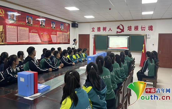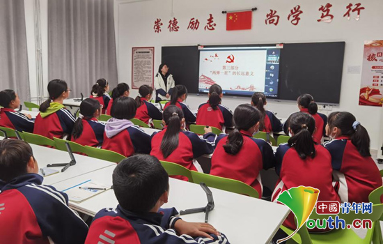 研支团成员陆韵祺组织学生接受党史教育。西北工业大学研支团 供图