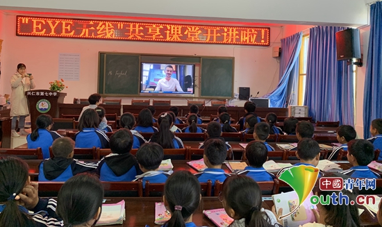 11月14日,宁波大学研支团联合宁波大学外国语学院在兴仁市第七中学开展“EYE无线”共享课堂。宁波大学研支团 供图