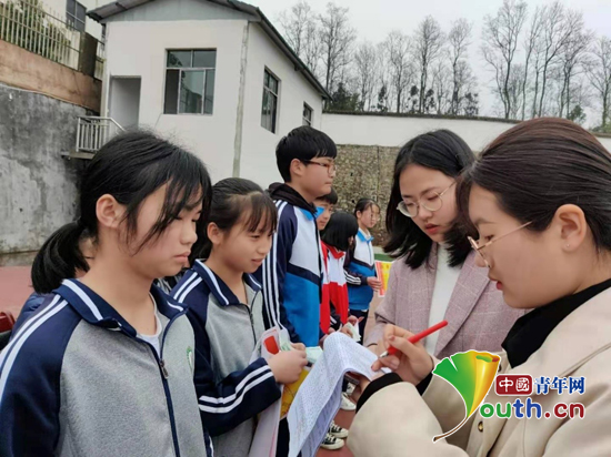 宁波大学研支团成员为兴仁七中学生们发放奖学金。宁波大学研支团 供图