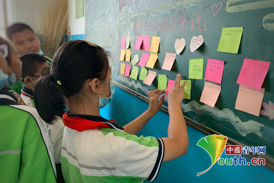 学生们亲手张贴对祖国母亲的真挚祝福。华中师范大学研支团 供图