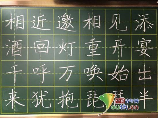 图为扬州大学第22届研支团成员书写的粉笔字。扬州大学研支团 供图