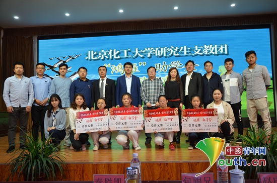 助学金启动仪式上,北京化工大学第一届研支团团长王磊介绍了“鸿雁”助学金的设置计划。与会负责同志和研支团成员一起为第一批受助学生颁发了助学金并为他们赠送了书籍。据介绍,接下来研支团还将设立综合、学科、文体艺术等多类别专项奖学金,以此激励广大学生全面成长成才。