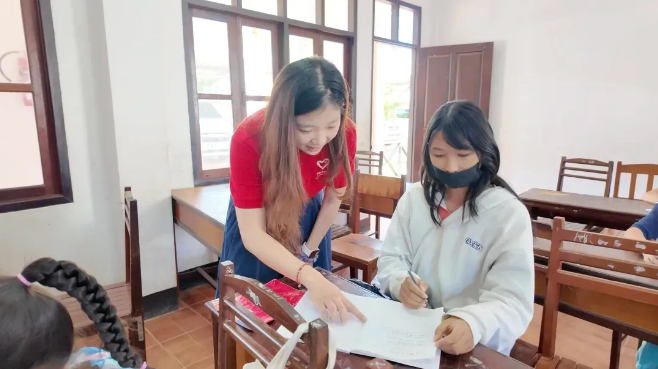 白天,队员宋璐杏在老挝团中央职业发展司工作。下午五点,他切换身份,为团中央学校的学生们上英语课外辅导班。随着将中国文化融入日常的深入教学,学生们对中国的好奇心越来越重,刷到短视频后总向宋璐杏求证信息。