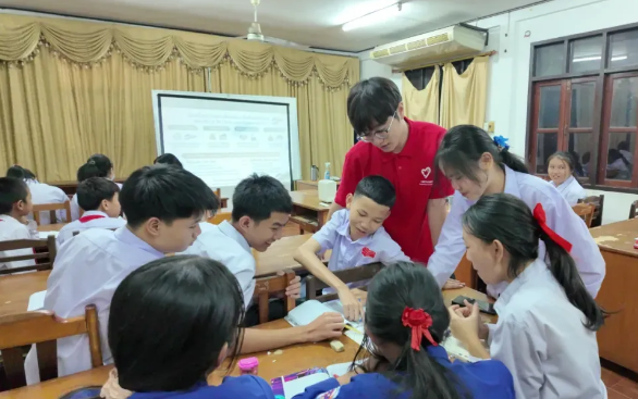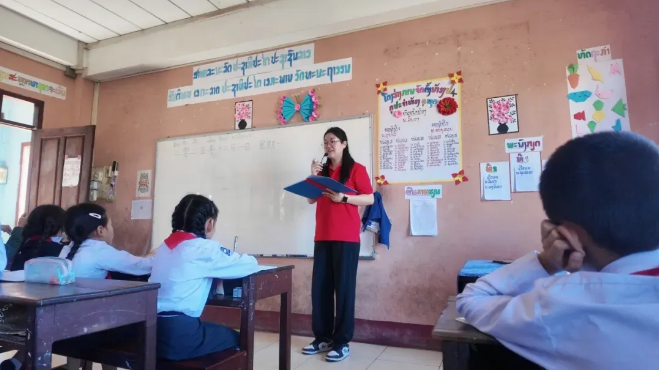 王逸如在老挝团中央承担中文基础班教学任务。“中文教学不是一蹴而就,而是陪着学生慢慢走。”她通过情景对话、动画和歌曲等形式,营造轻松的学习氛围,鼓励学生大胆表达,让中文课堂成为中老青年相互理解、彼此靠近的重要窗口。