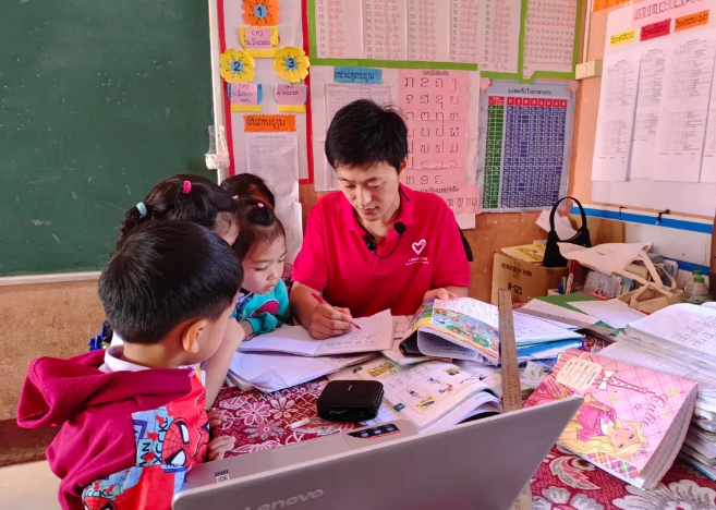 和杨蓉蓉一起服务的还有来自上海市体育运动学校的董笛。他教授英语,因材施教、帮助学生理解老挝语、英语间的差异。最后一课结尾,看着学生们依依不舍的眼神,董笛鼓励道:You are the best,and never give up learning! Waiting for you in China! 简单的临别赠言,在学生们的心中种下了中老友谊的种子。