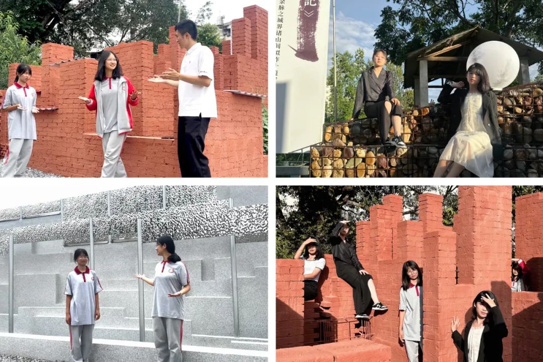 在校内,我组织了支教地“绿美校园共建式”的在地实践活动。方案基于职中老校区绿色网格本底,依托职教特色办学模式,对校园边角的绿地资源进行再发掘。我们邀请了职中师生和银生工匠,以“近道”“创新” “履远” “苑安” “春华”“无量”为题眼,共同打造了学海泮池景观、袖珍花园、风景文化石与植物组团、校园文化展示区等公共空间,串联了职中场域的“金角银边”,铸造了职中师生的精神圭臬。